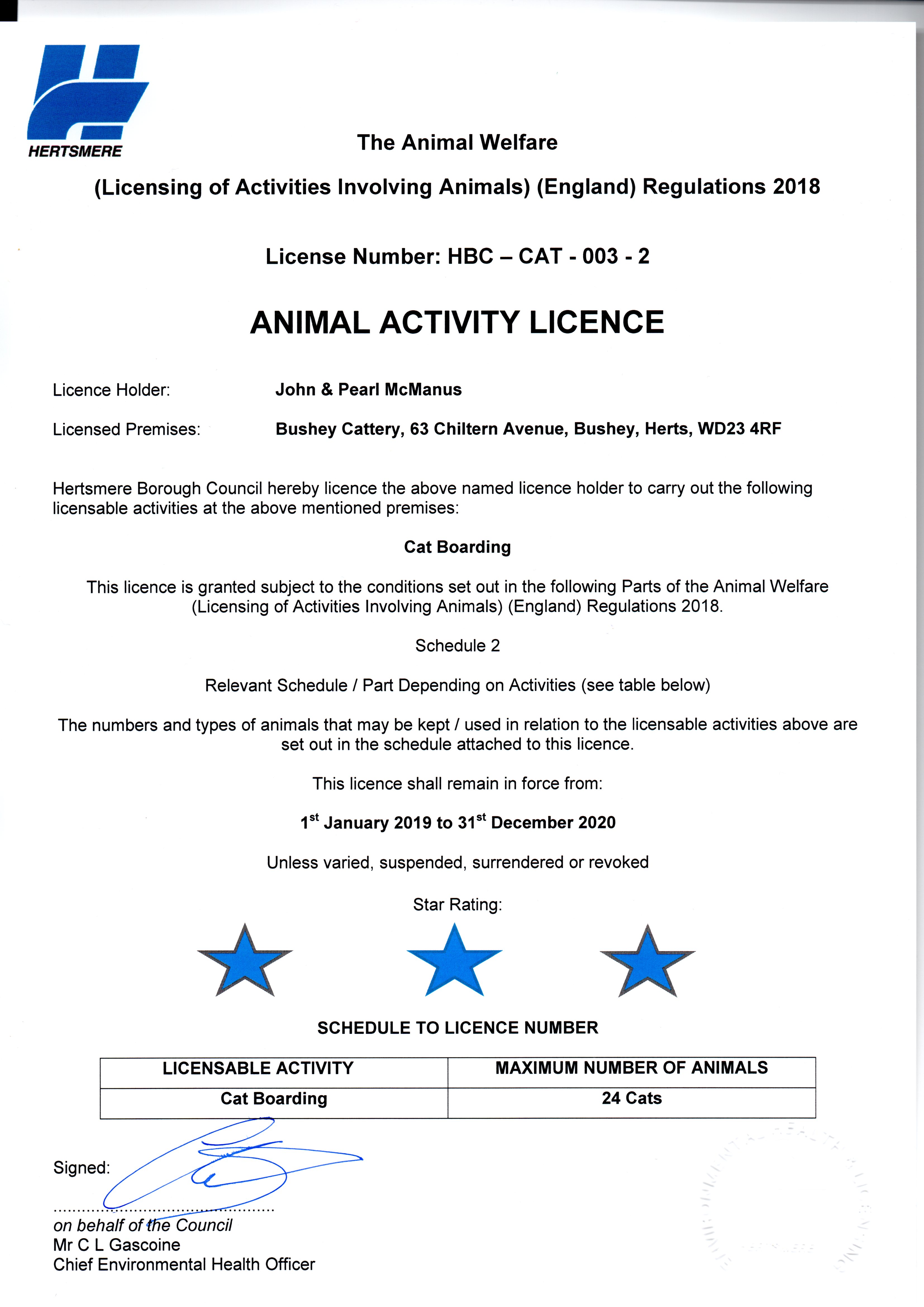 It is with deep regret that the cattery will cease to take bookings from 1 October 2021. It hasn't yet been decided whether this is absolutely permanent, or whether the cattery may re-open at a future date.